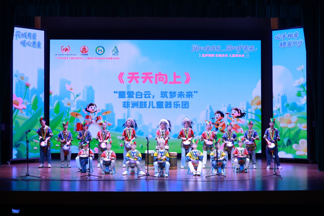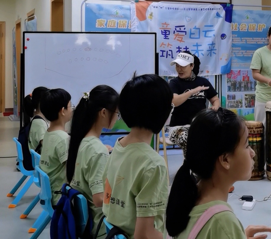 6月底的一个下午,广州市白云区未成年人救助保护中心(金沙点)传来阵阵鼓声,由该区未保中心支持成立的“童爱白云,筑梦未来”非洲鼓器乐团正在开展常规课程活动。而走近一看,只见孩子围坐一圈,在老师指导下以非洲鼓演绎《上春山》《天天向上》等歌曲,欢快洋溢。