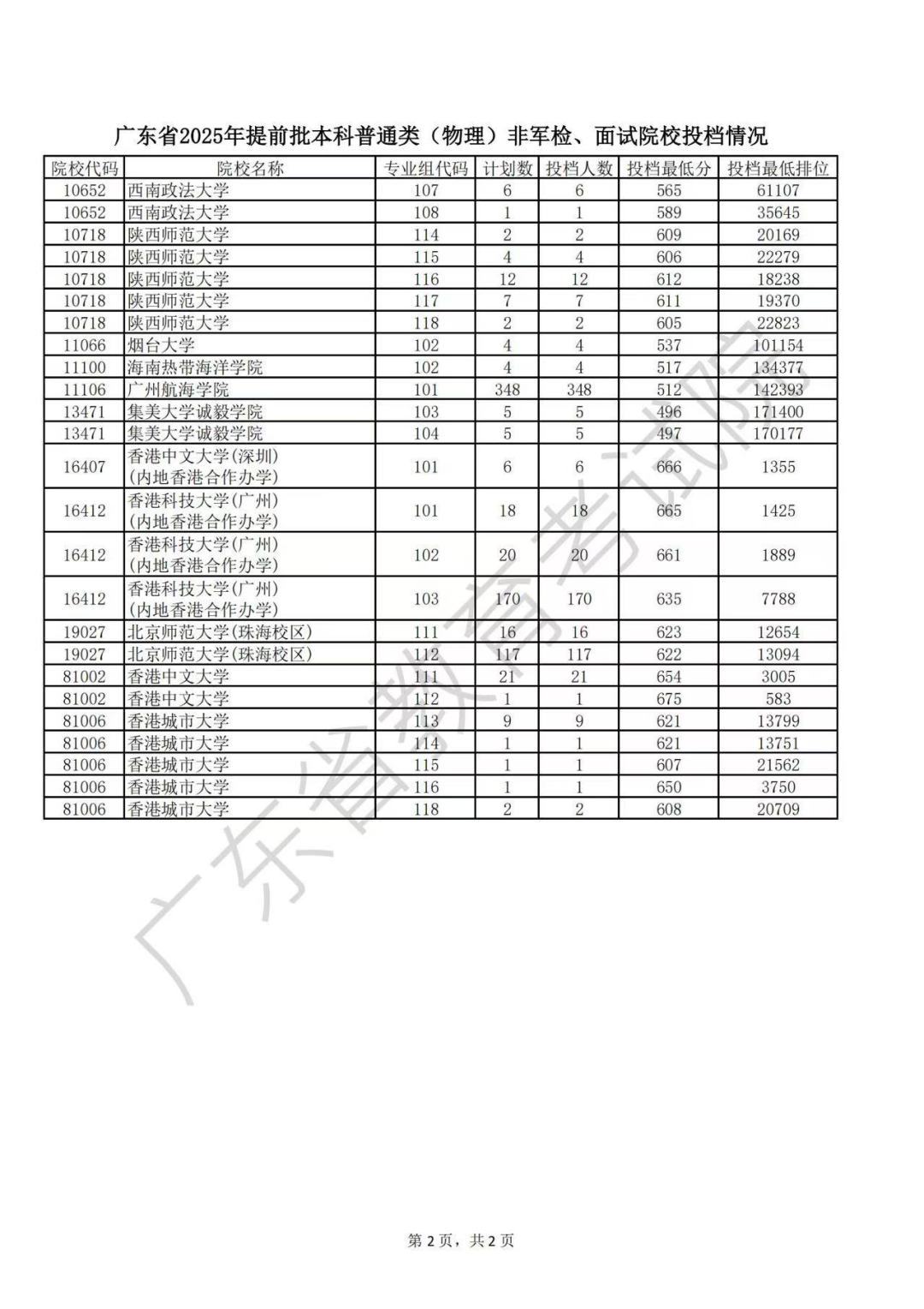 排名第3至第10的分别为:香港中文大学112专业组(675分,投档最低排位583),香港中文大学(深圳)101专业组(666分,投档最低排位1355),香港科技大学(广州)101专业组(665分,投档最低排位1425),香港科技大学(广州)102专业组(661分,投档最低排位1889),香港中文大学111专业组(654分,投档最低排位3005),香港城市大学116专业组(650分,投档最低排位3750),香港科技大学(广州)103专业组(635分,投档最低排位7788),上海海关学院108专业组(628分,投档最低排位10346)。其中,上海海关学院108专业组在广东招生27人,学校官网介绍,该校是海关总署唯一直属的全日制本科高等学校。