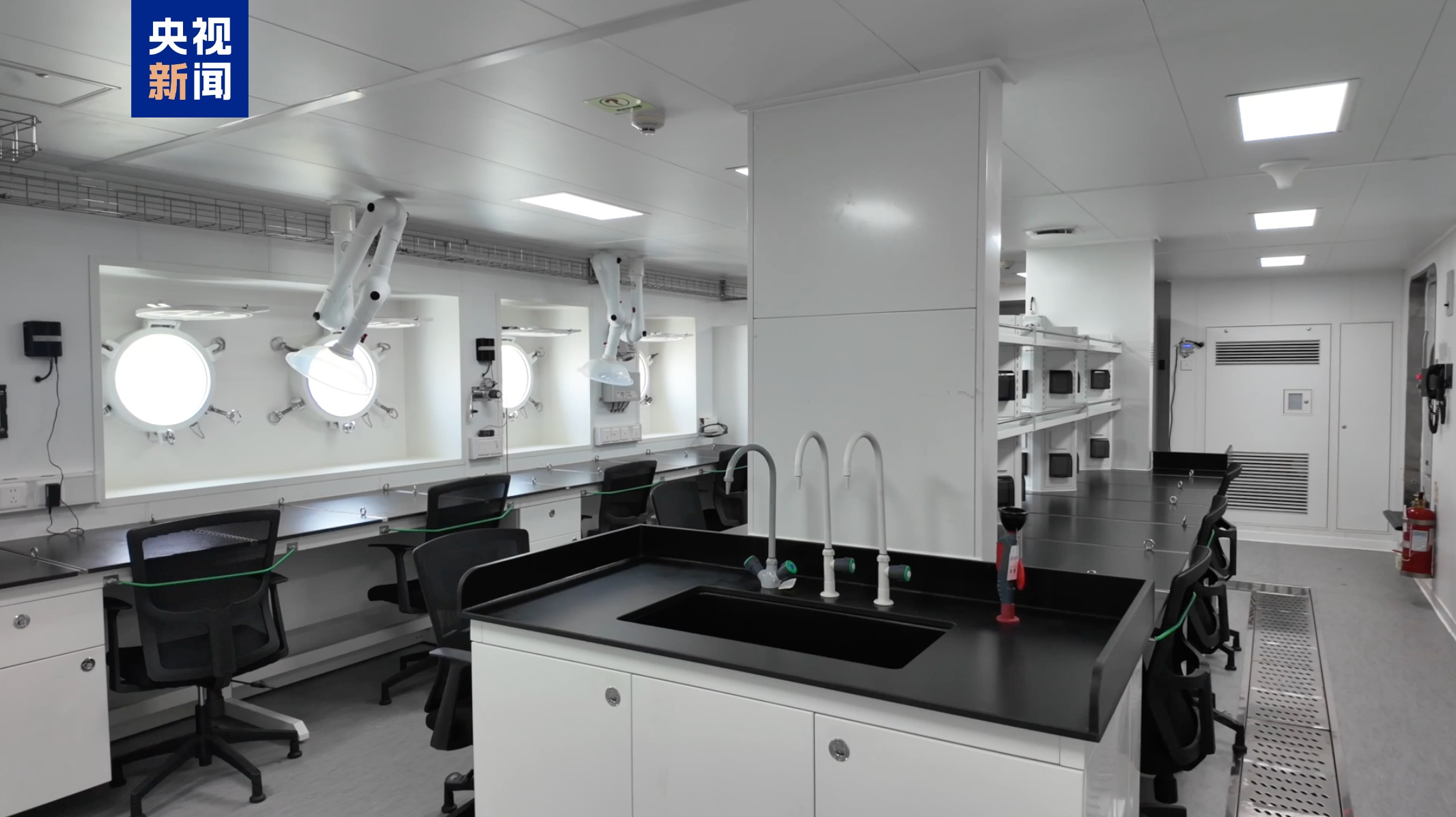 李正华介绍,这条船配置了多种不同工况的模块化实验室,根据每一个航次不同的科考任务,可以携带不同的科考用的集装箱,能够实现海洋地理、海洋生物、海洋化学以及大气环境各种相关的科学目标。另外海缆的铺设维修等一系列的海洋工程作业任务,在这条船上都是能够满足的。
