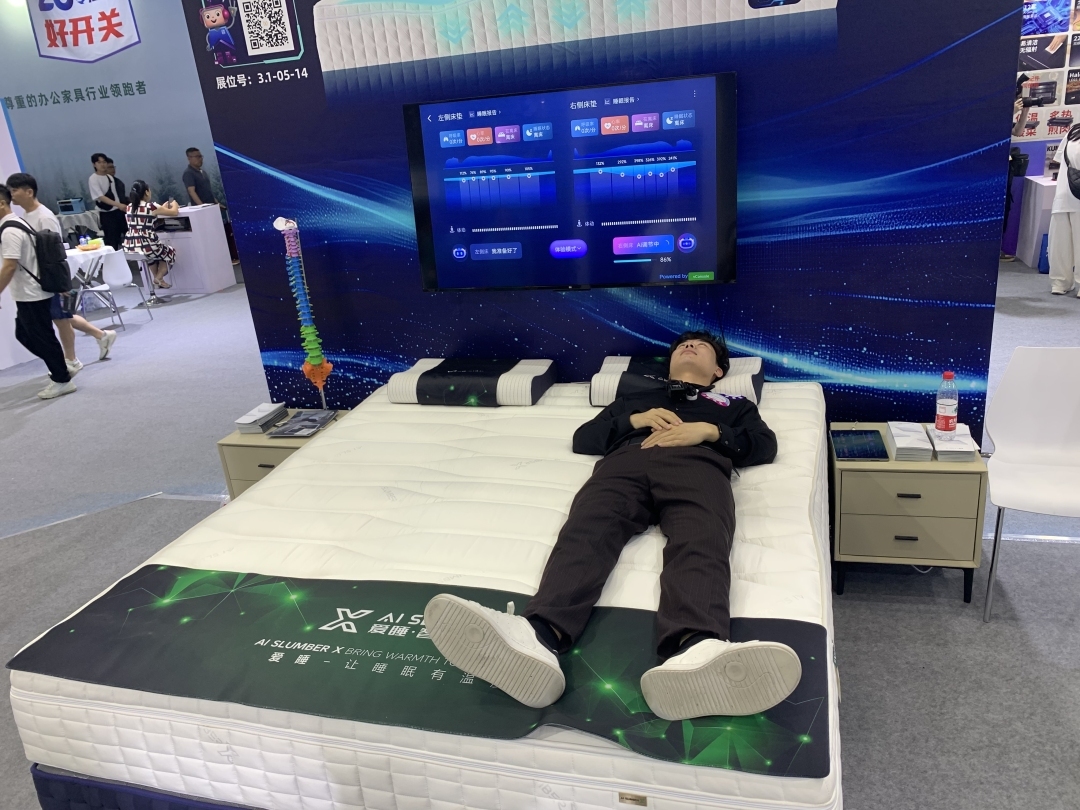 例如在一款参赛作品AI自适应调节护脊床垫,利用人工智能结合物联网技术的发展成果,床垫内置AI智能健康睡眠系统。记者体验时感受到,只要人睡在床垫上,床垫立即通过高精度传感器实时采集使用者的身体压力数据,并监测睡眠状态,床垫立即有了调整,让人感受到十分舒适。“床垫智能的原理是利用卷积神经网络结合加强化学习的AI算法模型,对数据进行分析处理,给出最优的调节方案,进而向AI智能床垫的执行机构‘高分子气囊’下达指令,让床垫调节至最适应使用者的状态。”研发人员说,高分子气囊根据使用者的肩、背、腰、臀、大腿、小腿进行分区主动调节,从而精准保护使用者的脊椎健康。