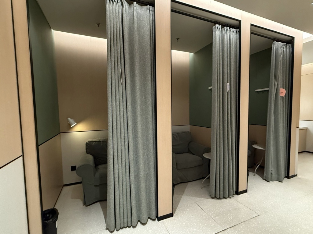 山姆母婴室内,沙发对面有两间可以关门的哺乳室。