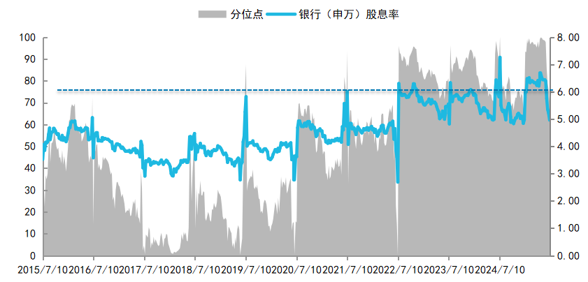 但从股息率来看,其“真金白银”的分红回报依旧具备吸引力。在经历一轮持续上涨后,银行整体的股息率仍有5%,处于近10年70%分位的较高水平。因此,对于追求稳健股息回报的长期投资者而言,其长期配置价值仍然值得关注。