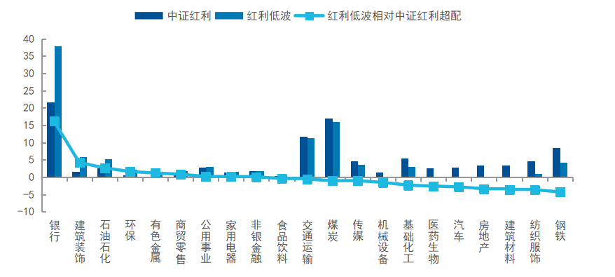 中证红利低波动指数在高股息的基础上考虑了“低波动”因子,让股价波动较小的银行、公用事业等板块在其中占据较大权重,煤炭、化工等强周期属性行业的权重有所降低。