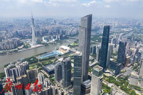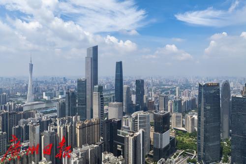 7月15日,广州天气晴好,蓝天白云下,珠江新城高楼林立的城市天际线凸显出广州的国际都市范儿。