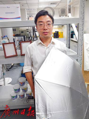 7月15日,由广州市人民政府新闻办公室组织的“全运会·看广州”主题采访活动来到南沙区的香港科技大学霍英东研究院,在香港科技大学霍英东研究院,一个个银白色的雨伞、防晒工作衣、建筑材料吸引了众人的目光。这些物件都被涂上了研究院自主研发的微纳米级被动式制冷涂层。