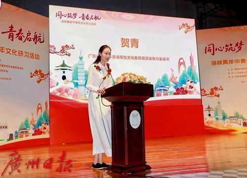 黄埔后人青年代表、广东省青少年黄埔军校文化教育促进会执行副会长贺青则表示,黄埔精神核心是“爱国、革命”。她进一步谈到,作为黄埔后人,她自幼听父辈讲述黄埔故事。跨越百年的精神是爱国主义教育和国防教育的力量源泉,更是跨越海峡、连接两岸同胞的精神纽带,愿两岸青年秉承“敢为天下先”的黄埔气魄, 既做文化火种的传递者, 更当精神血脉的守护者。