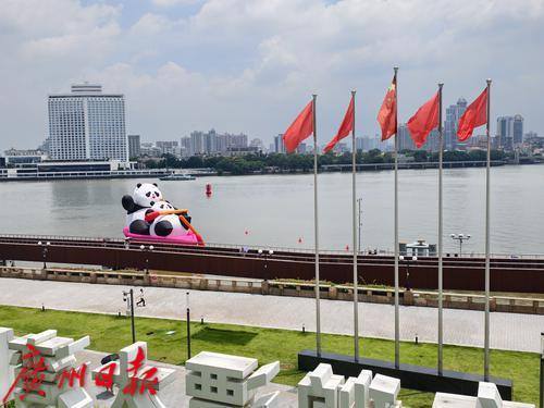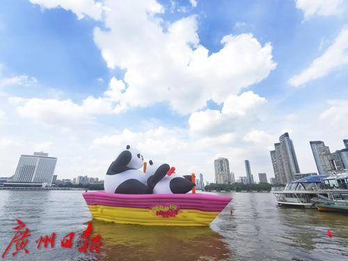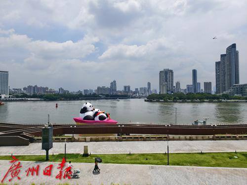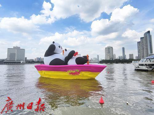 广东首个水上大型气模,伫立珠江水域,以憨态可掬的“安安”、“可可”熊猫造型,搭配全运主题元素,成为珠江畔吸睛新地标。