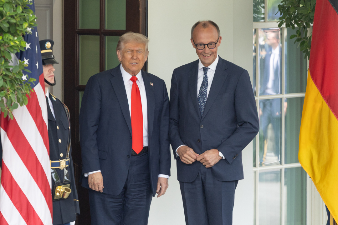 6月5日,美国总统特朗普在华盛顿白宫迎接到访的德国总理默茨。新华社记者 胡友松 摄