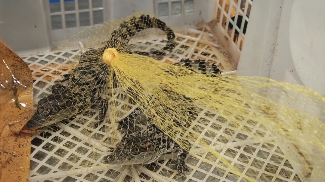 广州海关所属广州白云机场海关关员在对一架出境航班进行监管时,发现一名外籍男性旅客随身携带的行李机检图像异常,图像显示旅客的行李内有形似乌龟、鳄鱼等动物图像。经进一步查验,海关关员在该旅客的行李中查获用网兜和塑料盒装裹的活体乌龟和鳄鱼。其中,活体乌龟共计34只,大小不一,大的约有成人手掌般大小;活体鳄鱼共2只,尚属幼体。