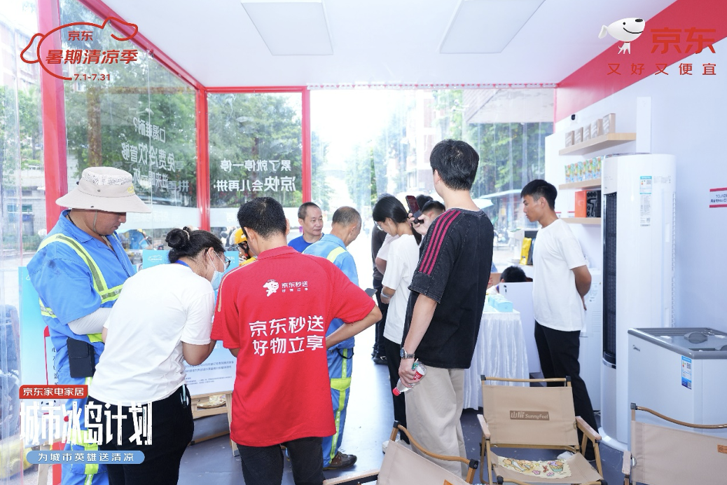 夏季热浪席卷多地,在如此炎热的天气下,城市中的环卫工人、外卖骑手、快递小哥等广大户外工作者们依然坚守工作岗位,用汗水守护着城市的正常运转。在广州市商务局、天河区天河南街道的统筹指导下,京东作为广州城市合伙人,于7月15日正式“落地”家电家居“清凉站台”,为广州户外工作者打造首个政企共建的清凉补给站。