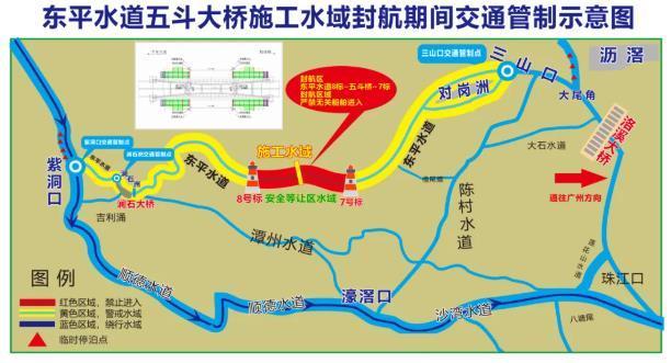 7月16日,记者从佛山海事局获悉,为保障东平水道五斗大桥重建项目施工期间通航环境安全,海事部门将于2025年7月五斗大桥吊装施工作业期间对东平水道相关水域实施封航交通管制。