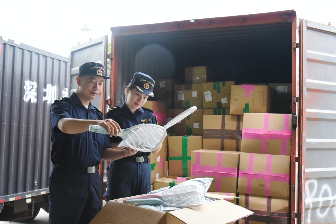 黄埔海关所属增城海关关员对出口驱蚊产品开展监管。