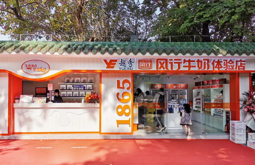 作为广州老字号企业、华南地区重要的乳企代表以及粤港澳大湾区菜篮子产品加工企业,越秀风行乳业自2007年起便领先同行开拓品牌连锁专卖店,以城区主干道为起点,以“风行牛奶专卖店,总有一间在您身边”为目标进行布局,竭力以最短的时间、最便捷的方式,将优质、安全、营养的产品供应给广大市民。随着消费理念变化,专卖店升级为品牌旗舰店,增加了现调产品、堂食社交空间,特别是结合自有城市牧场——广州仙泉湖牧场的限定奶源,打造了备受消费者青睐的营养鲜奶茶系列;区域布局也从社区延伸到地标景点、公园,延伸到了产业园区,打造了多种双效合一的专卖店新范式,以利民为目标,提供鲜产品、鲜生活、鲜服务。