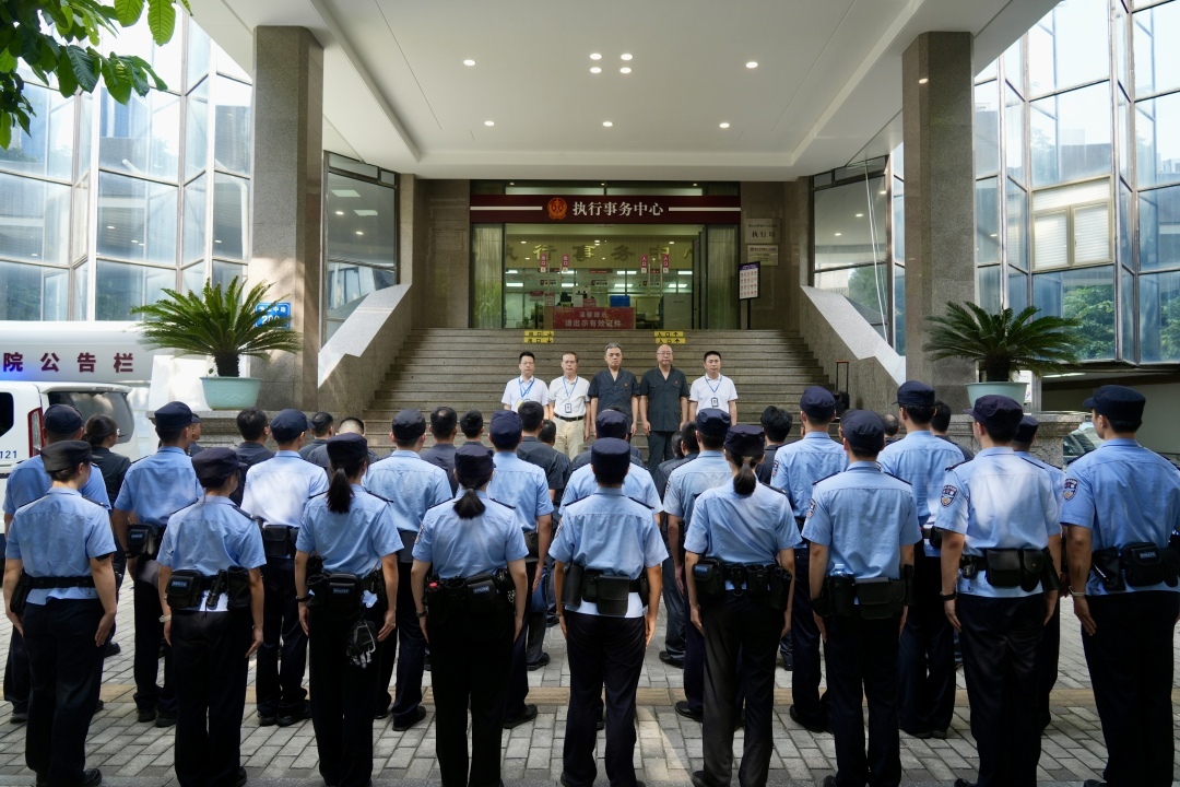 “佛山市禅城区人民法院2025年执行小案必执、法护民生‘铁拳’专项执行行动开始!全体干警,出发!”7月17日上午8时20分,佛山市禅城区人民法院“铁拳”专项集中执行行动正式启动。副院长郭云雄一声令下,该院50余名执行干警在区人大代表和政协委员现场见证下,分成4个片区8个执行实施小组,迅速奔赴该区各个执行现场。