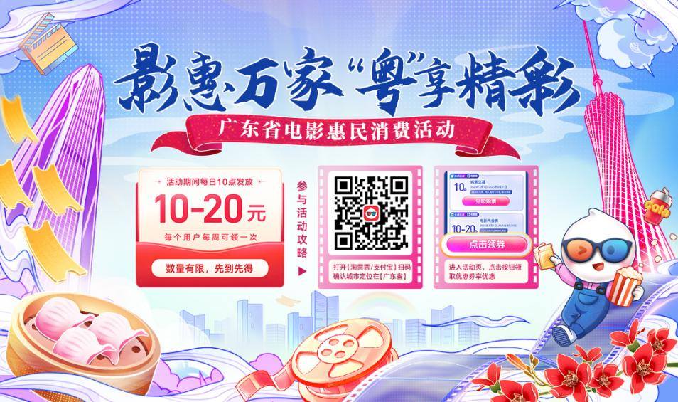 “影惠万家,‘粤’享精彩”电影惠民消费活动于1月19日启动,分三个阶段持续发放至8月31日,覆盖春节档、暑期档等重要档期,使用范围包含广东全省所有影院、所有影片场次。