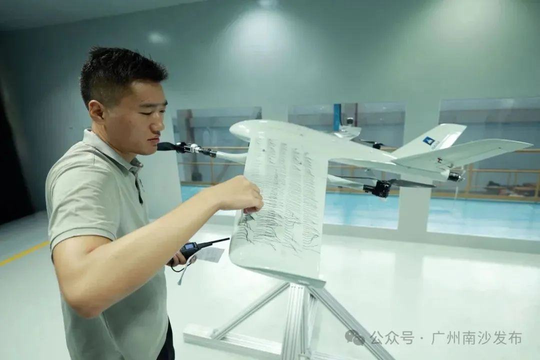 该风洞可精准模拟7级强风环境,通过持续风、阵风等多样化测试场景,为飞行器安全提供保障。广天院低空飞行器风洞试验平台负责人尚祖铭举了个例子:“假设低空飞行器在广州珠江新城上空穿梭,四周高楼林立,流场非常复杂;如果低空飞行器在偏海洋性气候的南沙飞行,则会受到热岛效应。为了保证低空飞行器的安全,我们会选择这些典型的、特殊的流场进行模拟,对低空飞行器的抗风性进行评估。”