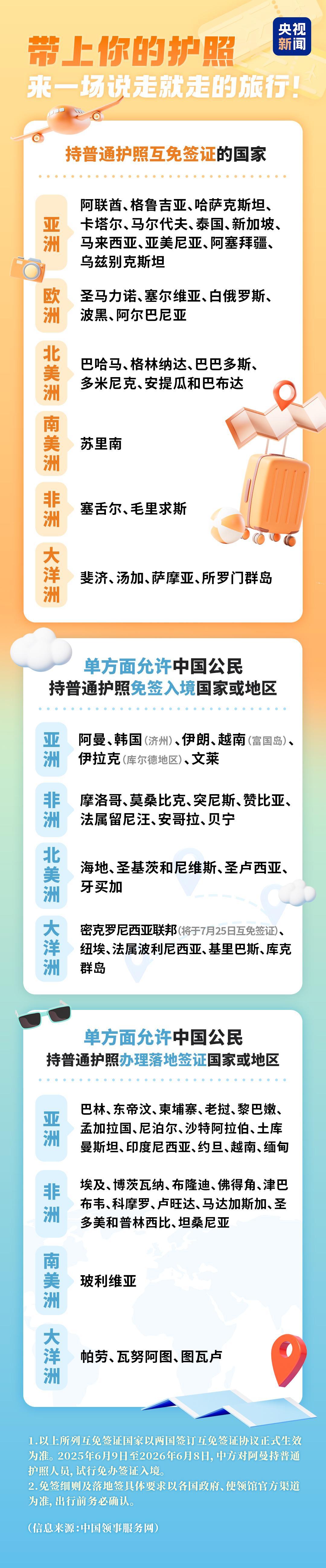 带上护照,还有哪些国家可以“说走就走”?一图了解↓