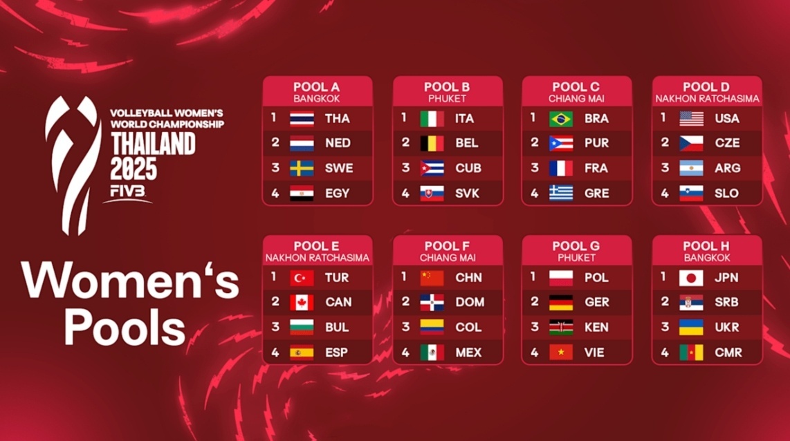 根据2025年女排世锦赛分组抽签结果,中国女排与多米尼加、哥伦比亚、墨西哥一同分在了F组,首战将迎战墨西哥。