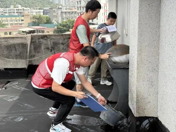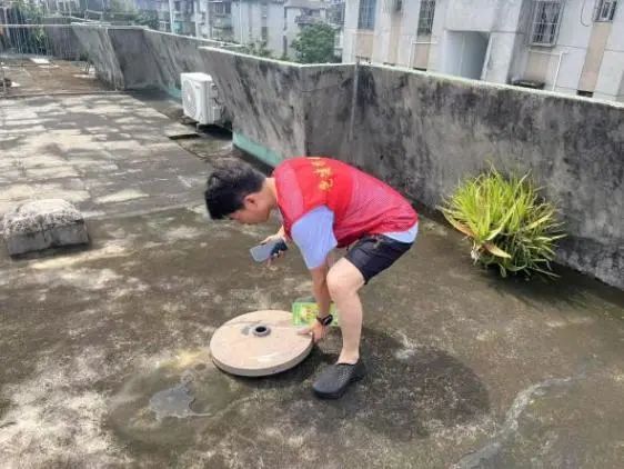 入户排查“无死角”,倾倒积水护万家。在康乐社区党委的带领下,党员们化身防控登革热的“先锋队”分组奔赴小区各个楼栋,到居民家中发放《预防登革热知识》宣传资料,耐心细致地向大家讲解登革热的危害以及预防的重要性,传授“翻盆倒罐、勤换水生植物用水”等实用技巧。随后,党员们将目光投向楼道、天台等容易被忽略的角落,一旦发现积水容器,便立刻动手清倒,不放过任何一个可能滋生蚊虫的隐患点。本次行动累计倾倒积水容器120余处。