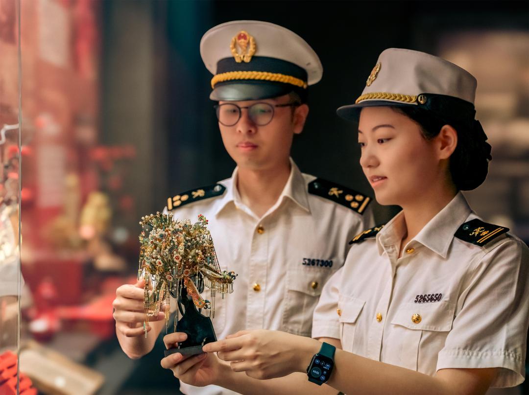 黄埔海关关员到辖区潮玩生产企业调研国风潮玩出海情况。