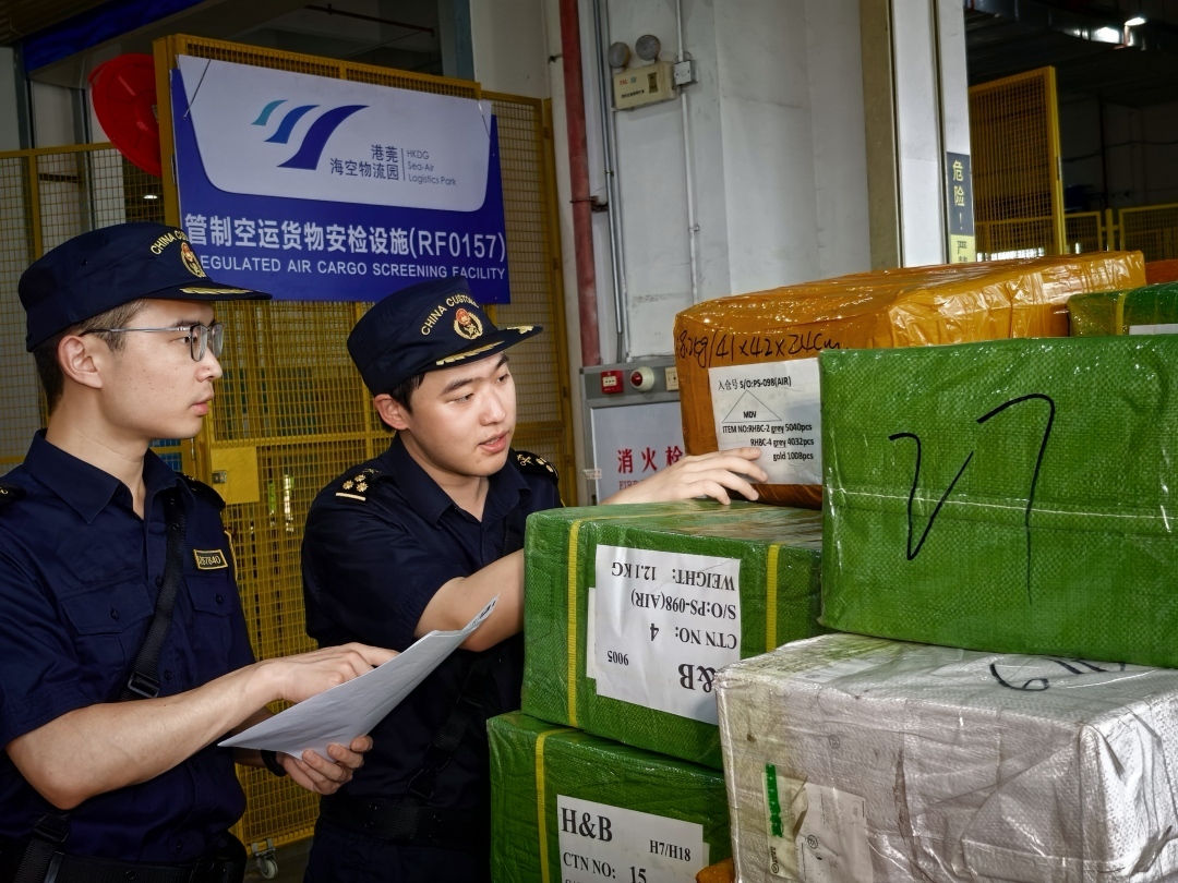 同样受益的还有跨境电商企业。数据显示,今年前6个月经空港中心跨境电商出口货量同比激增579%。东莞港空运供应链有限公司副总经理温媛云介绍,“去年4月,我们每月只有4个架次业务量,今年6月开始增加到每月13架次。海关应用X光机同屏比对技术,把单个包裹查验时间压缩到20秒内。”
