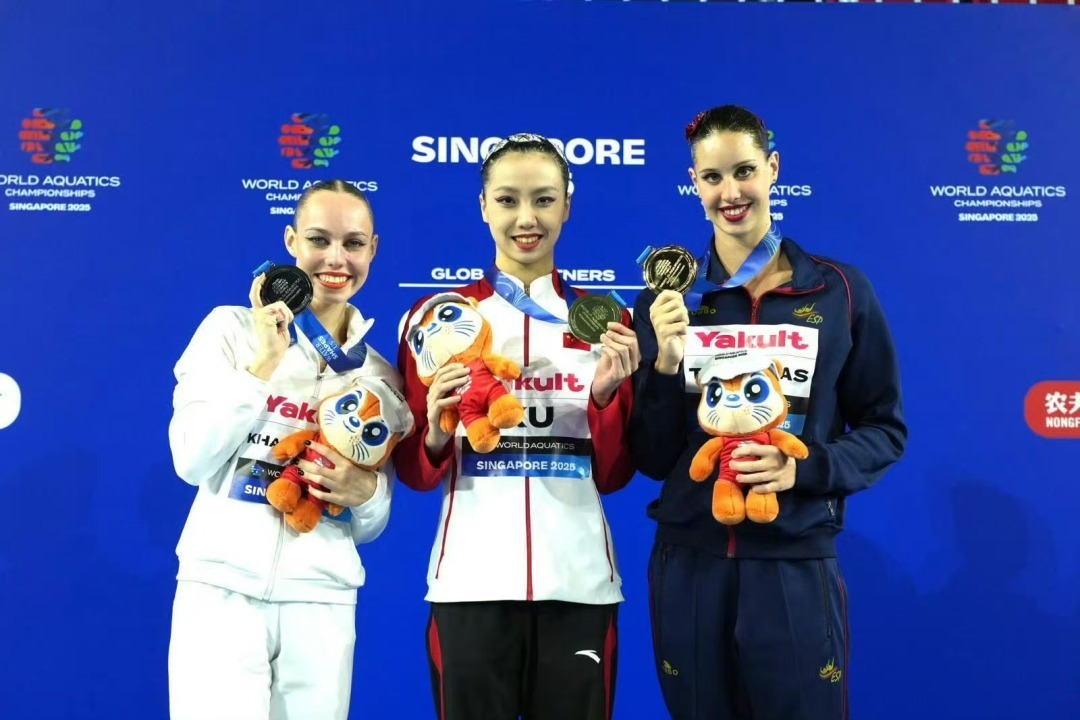 北京时间7月19日,2025年新加坡游泳世锦赛花样游泳项目决出两金,在傍晚进行的女子单人技术自选决赛中,中国队选手徐汇妍以272.9917分的优异成绩夺金,这是中国花样游泳队首次在世锦赛上获得该项目金牌,也是中国代表团在本届世锦赛上获得的第一枚金牌、第一枚奖牌。在当天下午进行的花游男子单人技术自选决赛中,中国队的小将郭牧也名列第4。