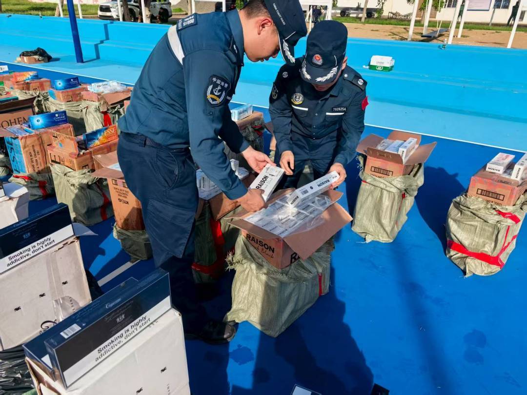 此前,湛江海警局廉江工作站在廉江市安铺港附近海域成功查获一批海上走私香烟,现场查获香烟1700余条,案值约74万元。7月7日至11日,湛江海警局不断发力,联合湛江市海关缉私局、湛江市烟草专卖局等执法部门主动出击,采用“海陆联动、围追堵截”的战术,查获2起海上走私香烟案,共抓获涉案人员10名,查扣涉案船舶1艘、车辆10辆,查获涉案香烟19600余条,案值约591万元。