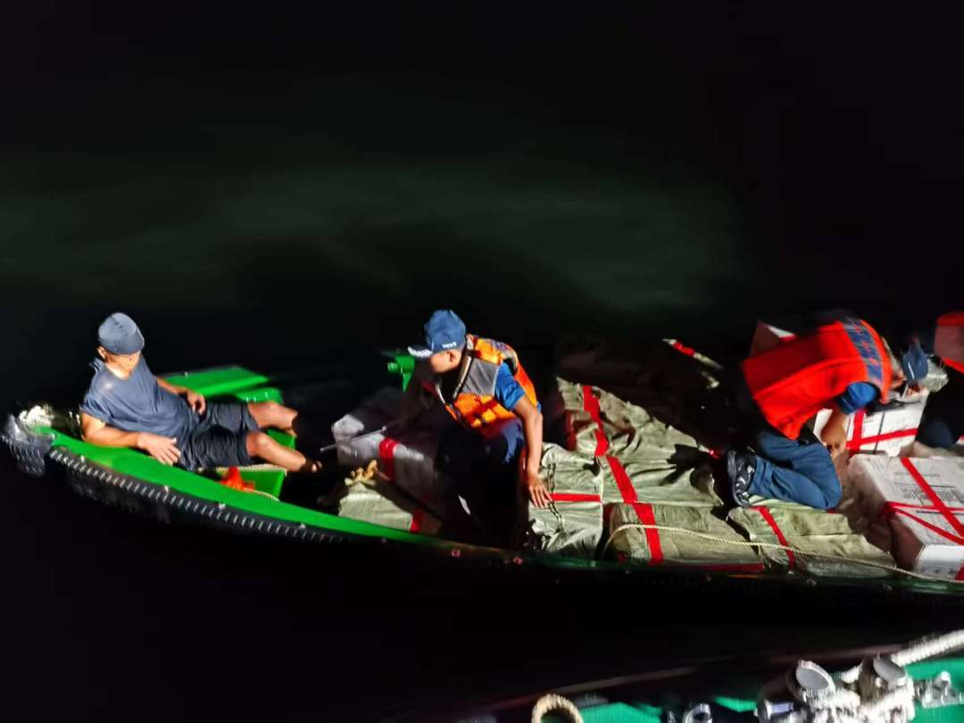 抵近过程中,执法员采取“喊话警告”“迂回包抄”的战术步步紧逼,该船舶一边采用“S”形弯路线危险驾驶,一边不断将货物抛入海中。海警执法艇不断调整航向以最快速度接近目标船舶,果断登临制控,现场抓获涉案嫌疑人2名。