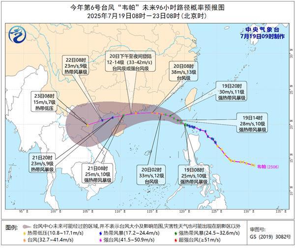 今年第6号台风“韦帕”7月18日生成以来,持续向西北方向行进,强度逐渐增强,截至19日9时已经加强为强热带风暴级。预计“韦帕”还将继续增强,最强可达台风级或强台风级,并且逐渐向广东深圳到海南文昌一带沿海靠近,将于20日下午至夜间在上述沿海登陆(12至14级,33至42米/秒,台风级或强台风级)。
