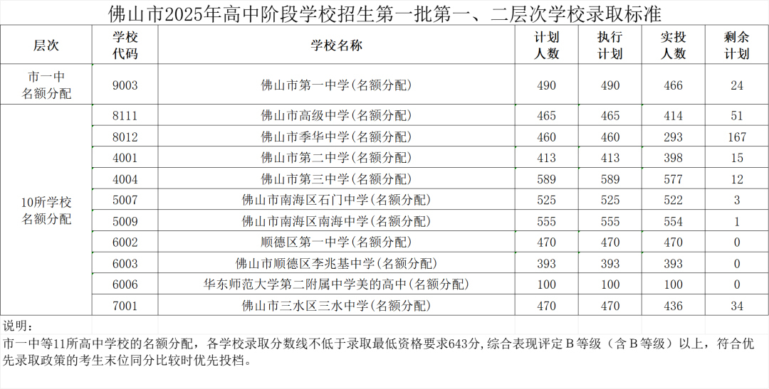 7月20日,佛山市招生办公布2025年佛山市高中阶段学校招生第一批录取控制分数线及学校录取标准。