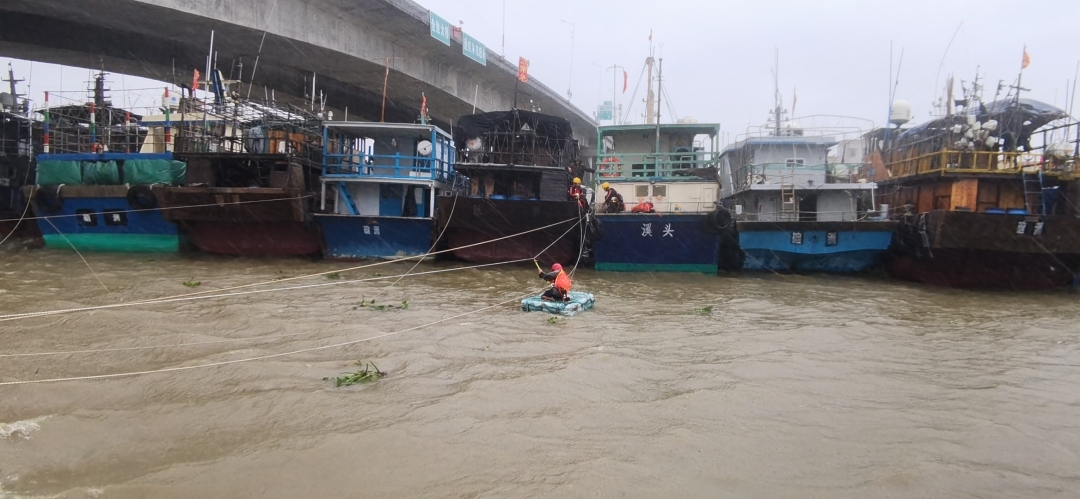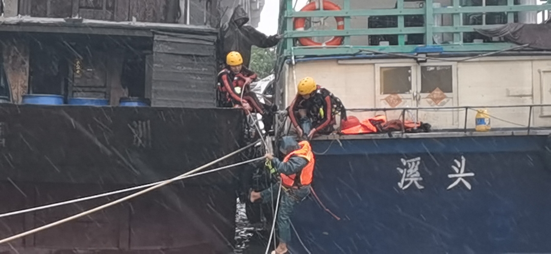 记者从广东省消防救援总队获悉,7月20日10时,受台风“韦帕”影响,有渔船停泊在中山坦洲大涌裕丰围,因风势迅猛,部分渔民被困船上,无法上岸避险。接警后,坦洲消防救援大队迅速赶赴现场处置。
