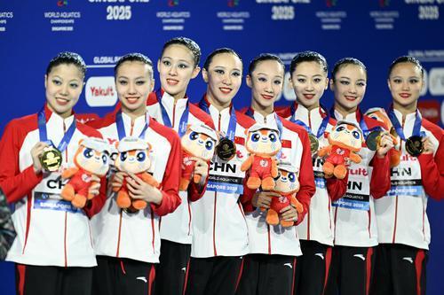 今天,2025年新加坡游泳世锦赛决出了花样游泳集体自由自选项目的冠军,中国队以348.4779分成功卫冕,领先亚军日本队近14分,这是中国代表团在本届世锦赛获得的第二枚金牌。