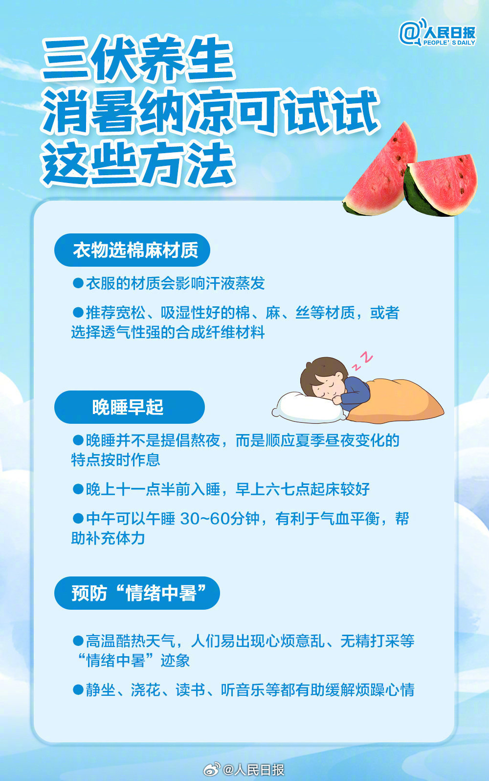 今天已正式入伏,2025年三伏共30天。消暑纳凉怎么做?要避开哪些养生误区?