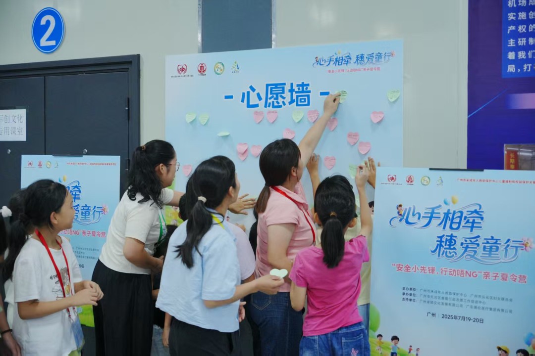 亲子家庭在心愿墙上留下小心愿、小梦想