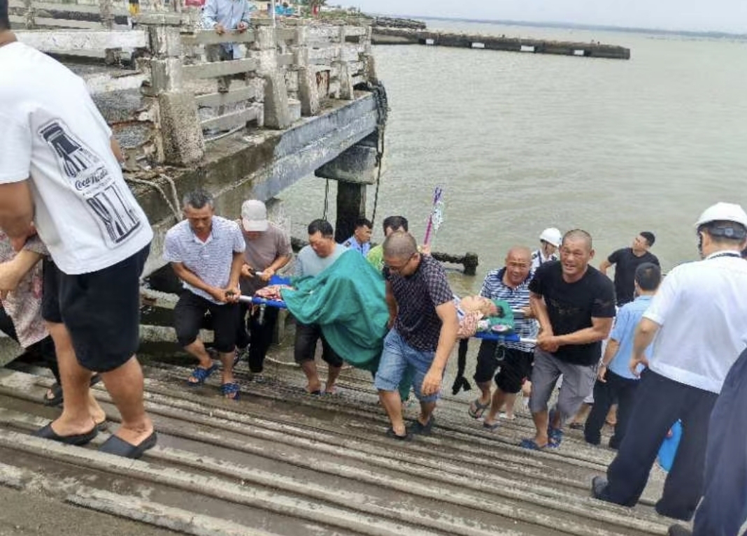 在市、区、镇等三级应急指挥体系的高效联动下,10时36分,78岁胃出血的老人被医护人员送上“玮轩1”船。同时转送过来的还有在7月19日夜晚摔倒导致重伤的79岁老人,以及因肾结石导致腹痛的2名老年患者。