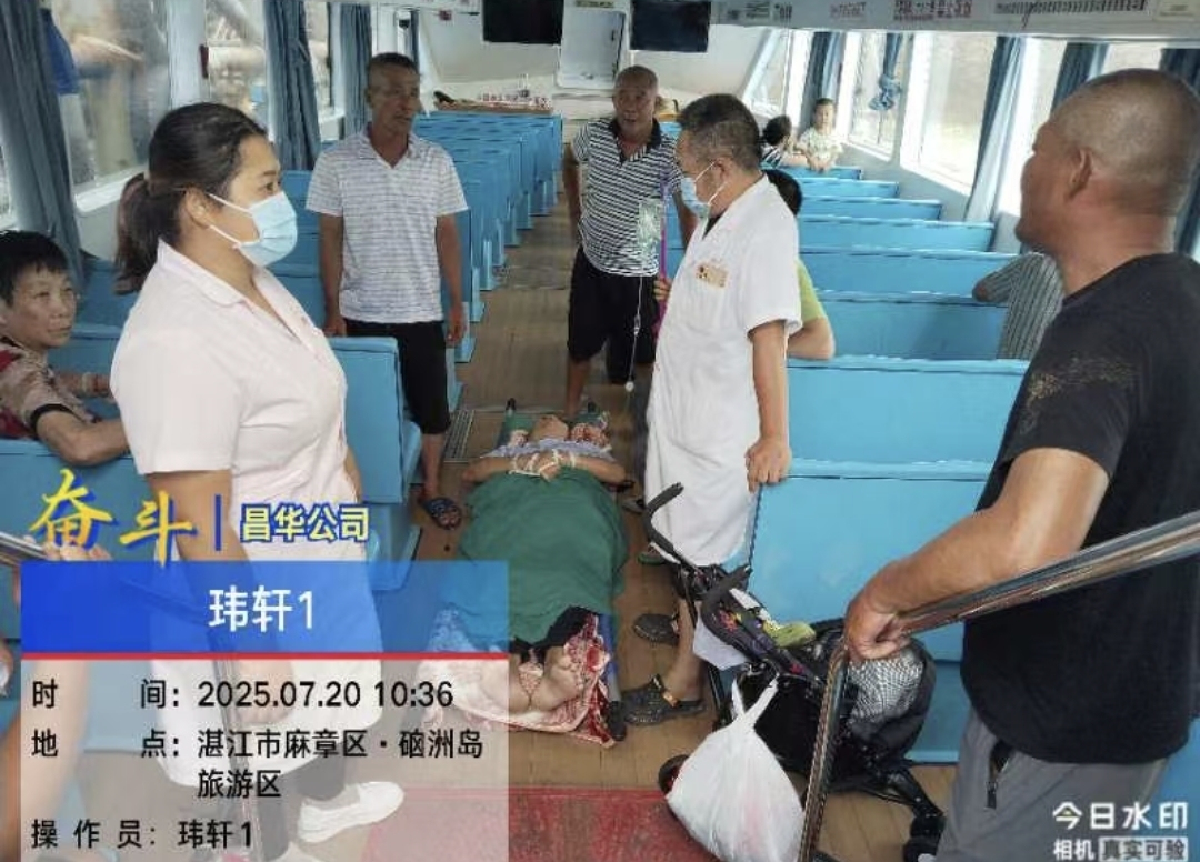 硇洲镇、区住建交通城综局紧急联系湛江海事局,申请启动海上紧急救援预案,开辟生命救助通道,联系昌华客运有限公司派出转运病人的船只。昌华公司派出“玮轩1”船执行任务。
