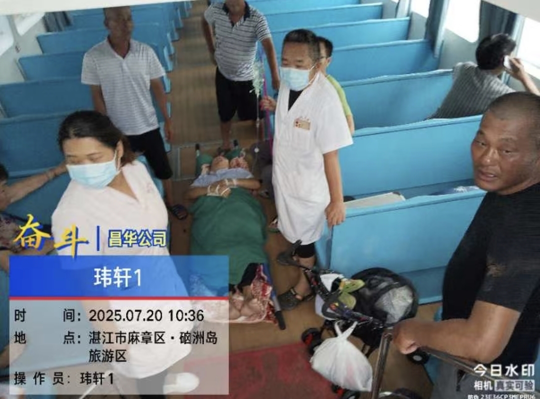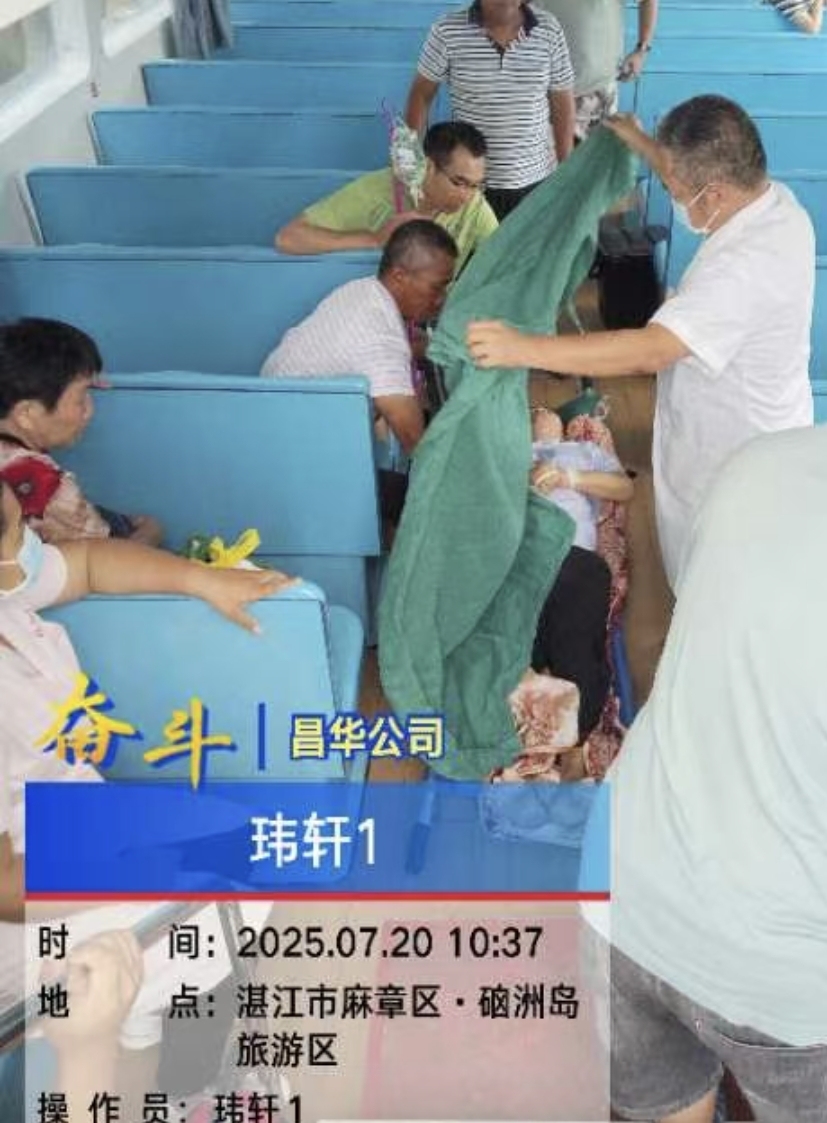 7月20日上午,在紧张的防台风工作中,一场与时间较量的“生命接力”在湛江经济技术开发区硇洲镇上演。