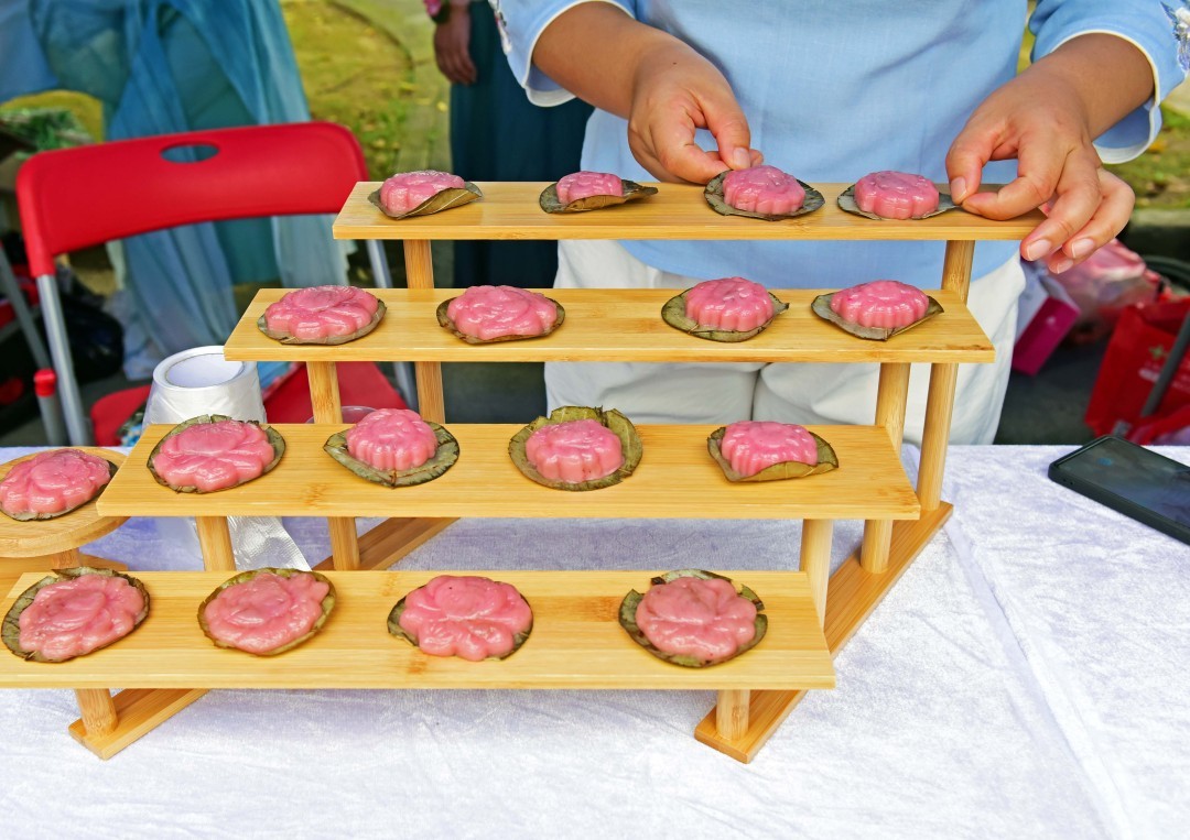 活动现场,“好人在身边”精神文明建设集市成为传递文明风尚的核心平台。“好人在身边”志愿服务摊位吸引众多村民游客驻足,现场跳绳教学、手编工艺教学等互动热烈。集市还巧妙融入荷花元素,荷花点心制作、廉洁主题绘画,村民游客们踊跃参与其中,传递文明新风,更添雅致情趣。