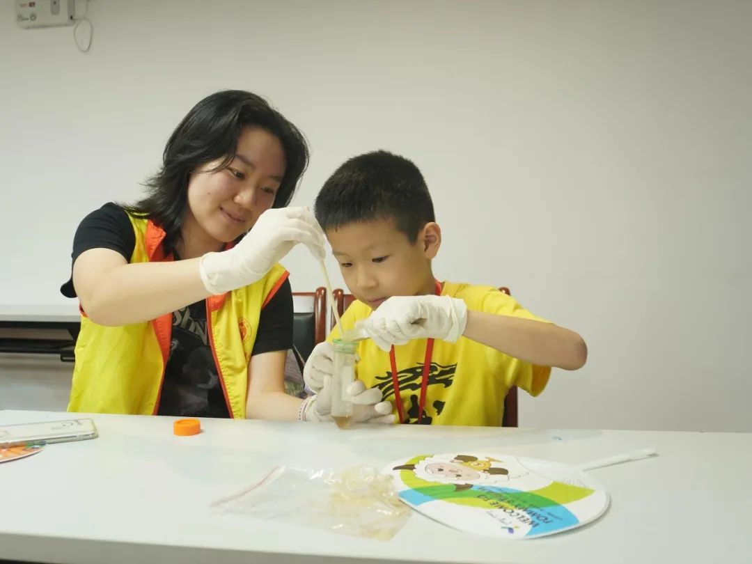 亲手提取水果DNA的实验将气氛推向高潮。当白色絮状物从溶液中析出,孩子们爆发出欢呼:“原来科学离我们这么近!无论是实验中的小白鼠,还是潜心研究的科学家,都在为守护我们的健康默默努力。”严谨的科研现场,悄然在孩子们的心中播下了热爱科学的种子。