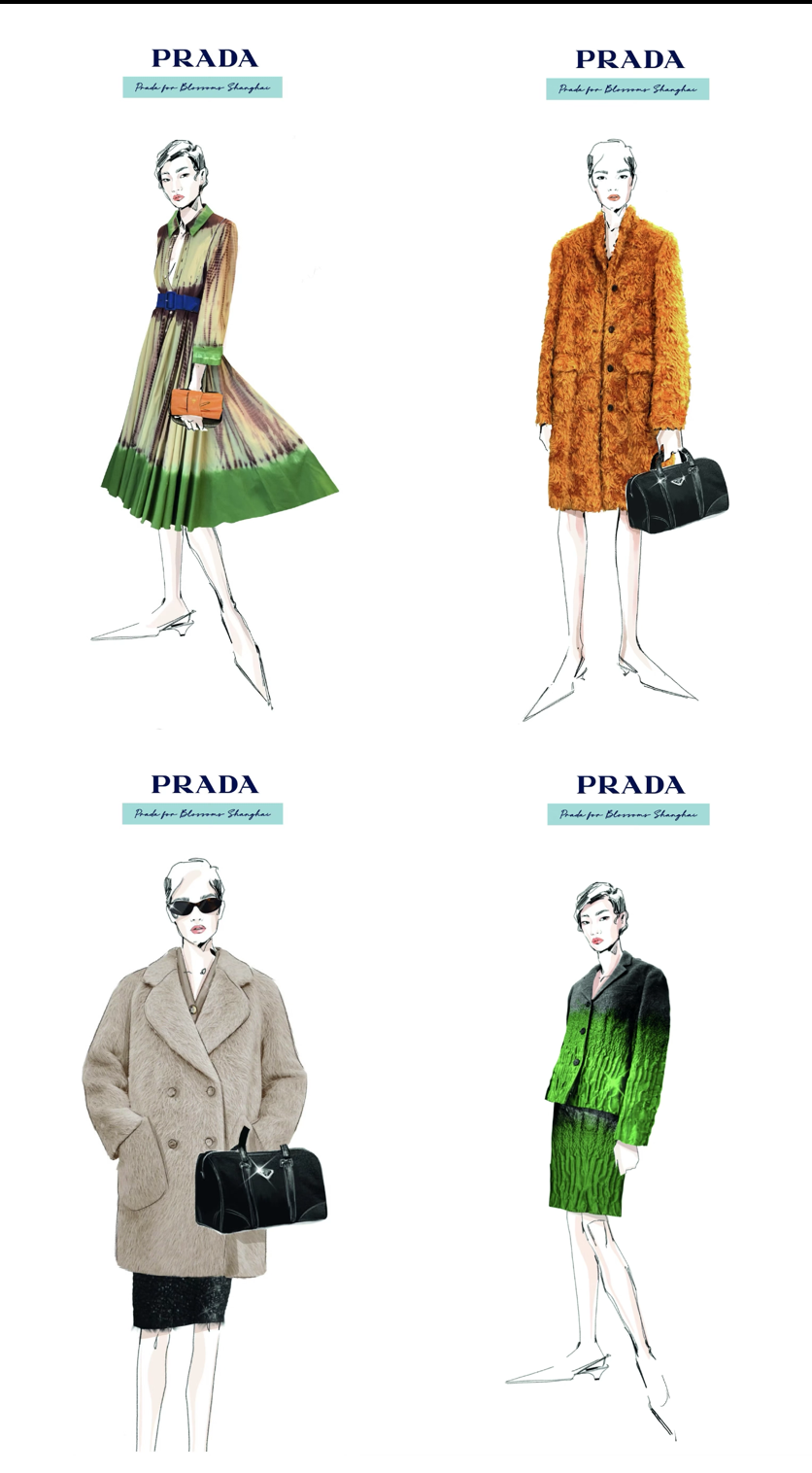 (Prada为电视剧《繁花》中的角色打造的时装设计概念图。)