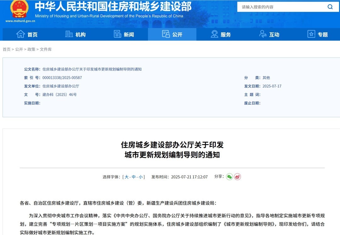为落实《中共中央办公厅、国务院办公厅关于持续推进城市更新行动的意见》,指导各地制定实施城市更新专项规划,建立完善“专项规划—片区策划—项目实施方案”的规划实施体系,日前,住房和城乡建设部组织编制了《城市更新规划编制导则》。