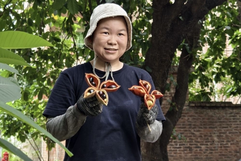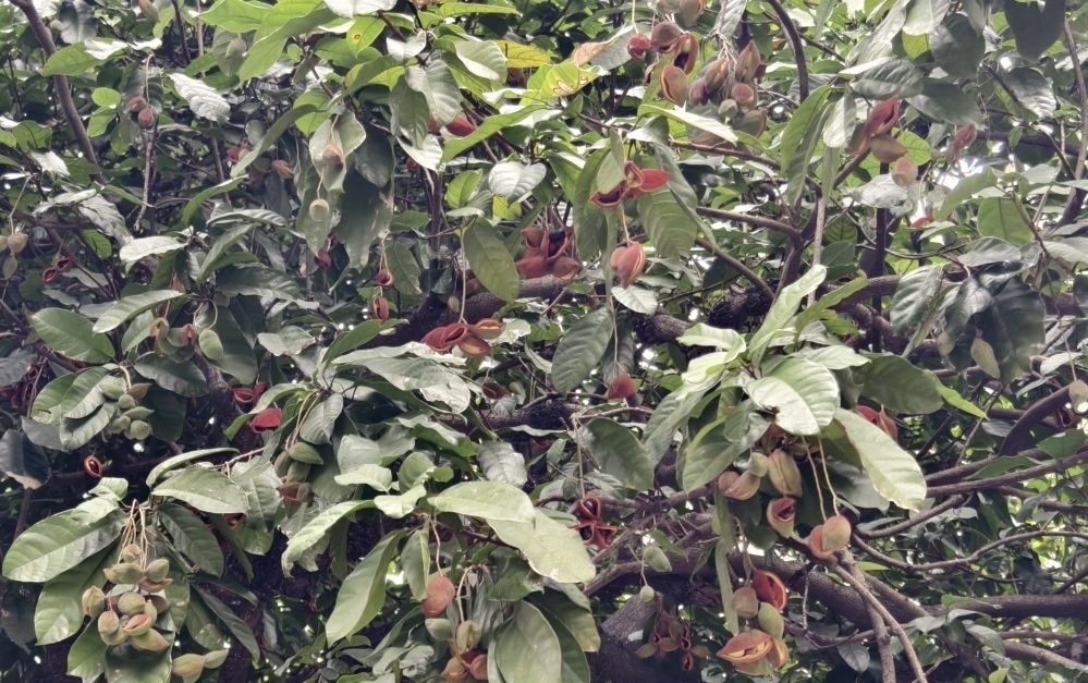 当天下午3时多,记者来到韦涌村南边大路后街,这里有10多棵树龄超过50年的凤眼果树,树枝上挂满了果荚,果荚由青变红,其中,大部分果荚已经开裂,露出了果实。