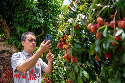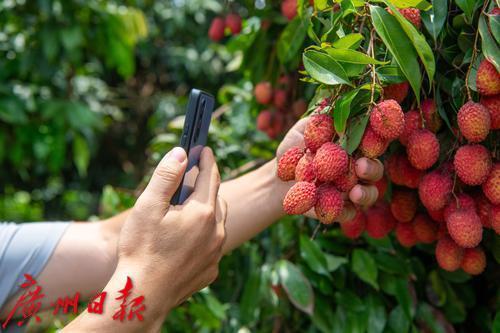 通过荔枝种质资源性状采集系统手机端,史发超拍照记录荔枝果实。