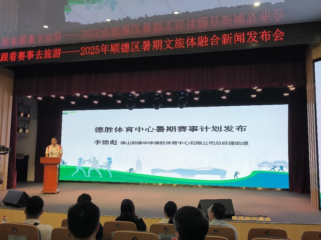 7月22日,“跟着赛事去旅行”——2025年佛山市顺德区暑期文旅体融合新闻发布会在顺德区文化馆举行。现场,佛山顺德华体德胜体育中心有限公司总经理助理李德彪介绍了暑期赛事信息。