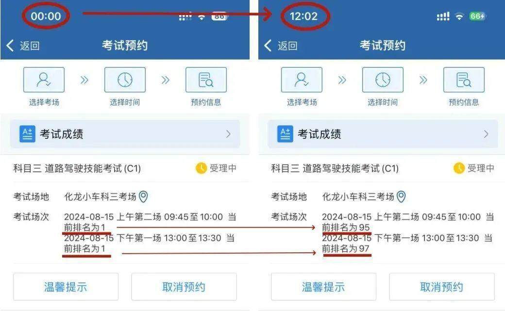 驾考预约不以“抢号”方式,并非早预约就能先占得考试位置,而是以受理时间先后或与上一科目考试“间隔”时间的长短来确定排名先后。