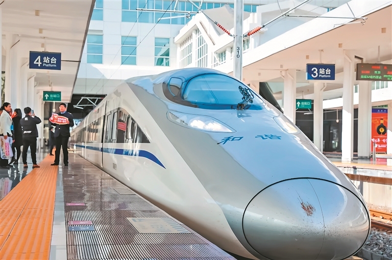龙岩站始发至广州东站高速动车组首发开行。(资料图片)