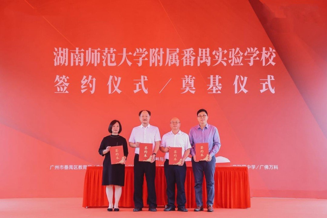 番禺区又迎重大教育利好。7月23日,湖南师范大学附属番禺实验学校(暂定名)正式签约落子万科檐屿城。据悉,该学校为番禺区政府引进湖南师范大学附属中学管理办学,规划为九年制共36个班级,计划2027年9月份开学。签约当天,学校奠基仪式同步进行。