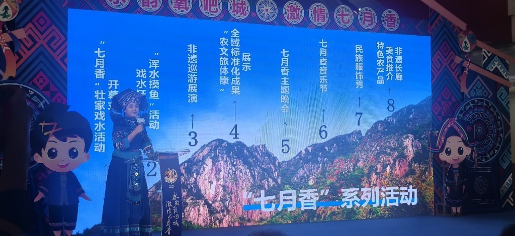 会上宣布了2025年广东(连山)“七月香”壮家戏水暨非遗民俗文化系列活动将于8月29日盛大开幕。本次活动以“水韵氧吧城·激情七月香”为主题,系列活动涵盖戏水狂欢、“浑水摸鱼”、非遗巡游、美食展、“七月香”主题晚会、音乐会、民族服饰秀等丰富内容,深度融合生态、传统与创新元素,精心展现自治县“农文旅体康”融合高质量发展成果,让广大游客体验激情活力的文化盛会,在戏水狂欢中感受浓厚的壮瑶文化魅力,共享生态与人文交融的夏日盛景。