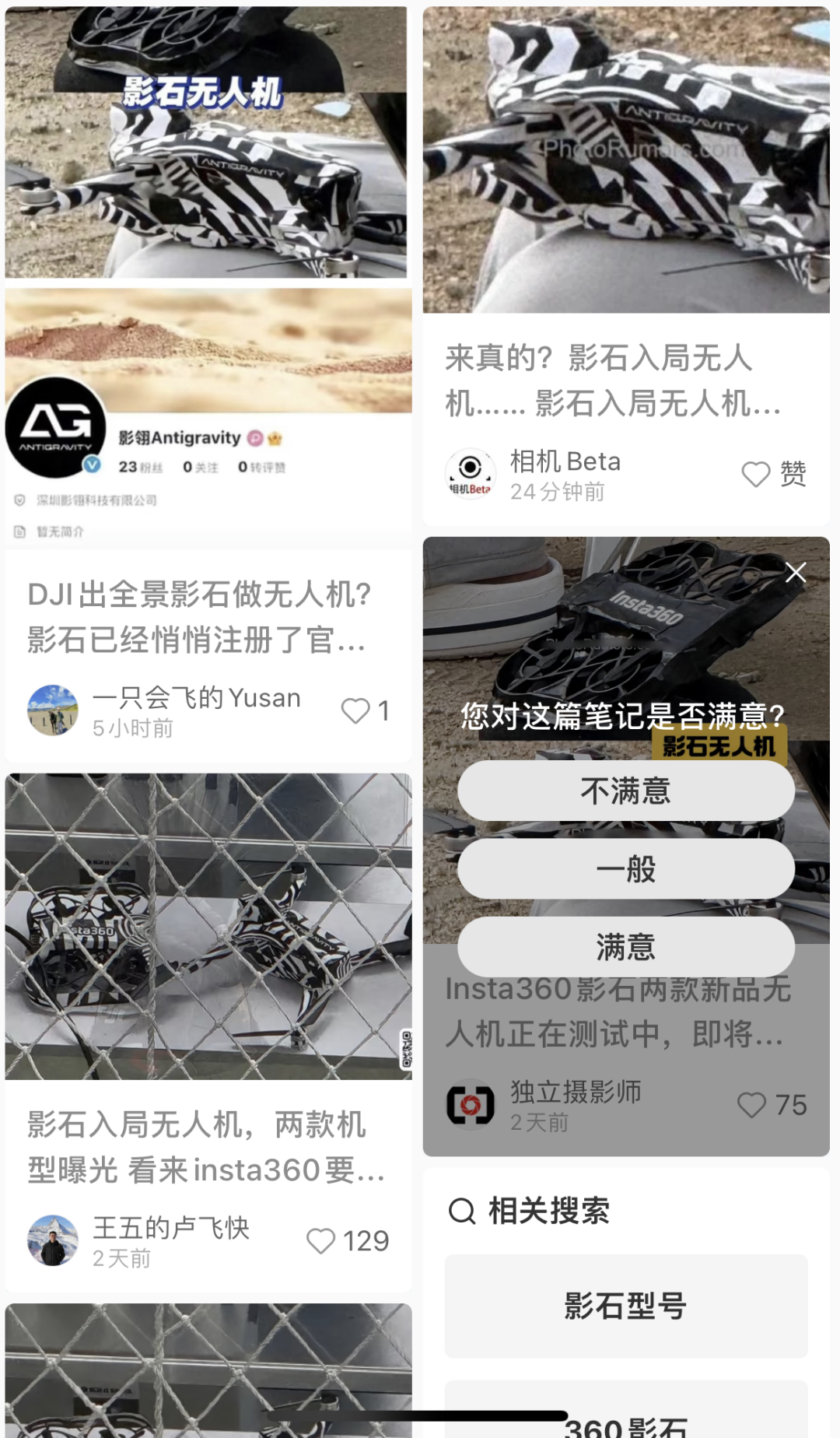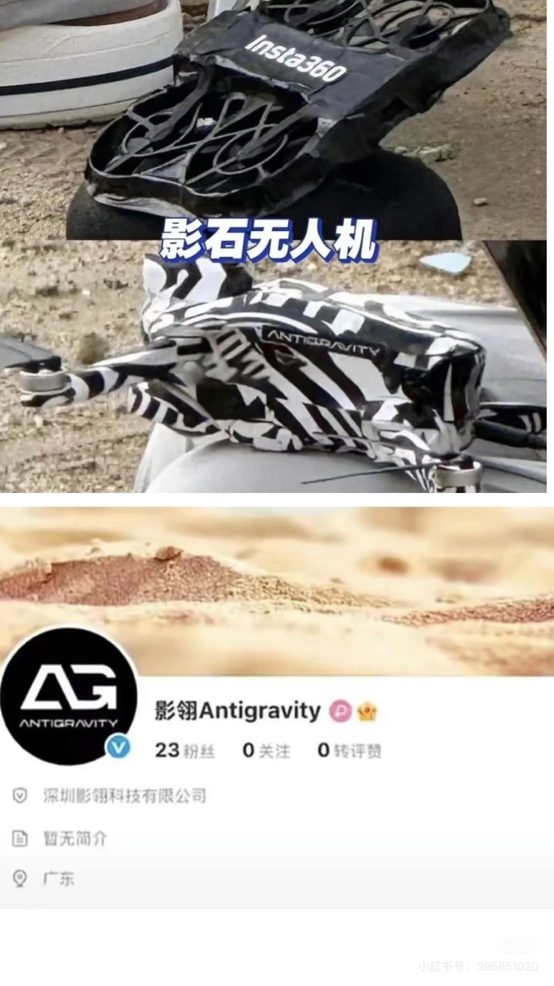 此前,两张疑似印着影石自有品牌“Insta360”和第三方品牌“Antigravity”标志的无人机产品照片在网上流传,产品形态差异显著,引发市场关注。
