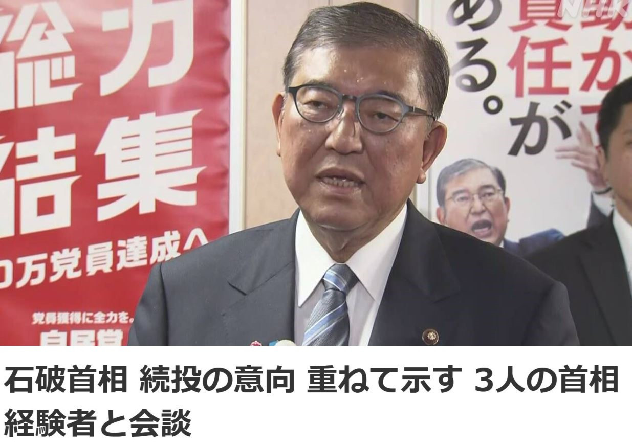 当天下午,石破茂与三位前首相麻生太郎、菅义伟以及岸田文雄进行了超过一小时的会谈。这被日本媒体称为“特殊的例外”,因为多位前首相和现任首相会晤本身就不常见,而且像这样的自民党内部会谈超过一个小时的情况也不多见。